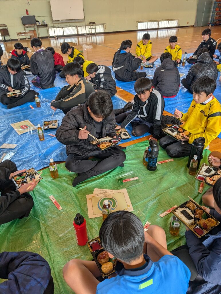 その後は、お腹を空かせた子供たちを待っていたのは、クラブパートナーの光昇園さんによるボリュームたっぷりなお弁当と、心まで温まる豚汁です。